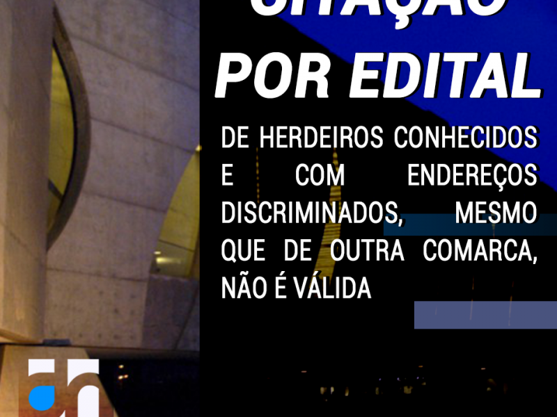 + Leia mais“Não é válida a citação por edital de herdeiros que não residem na comarca em que tramita a ação de…